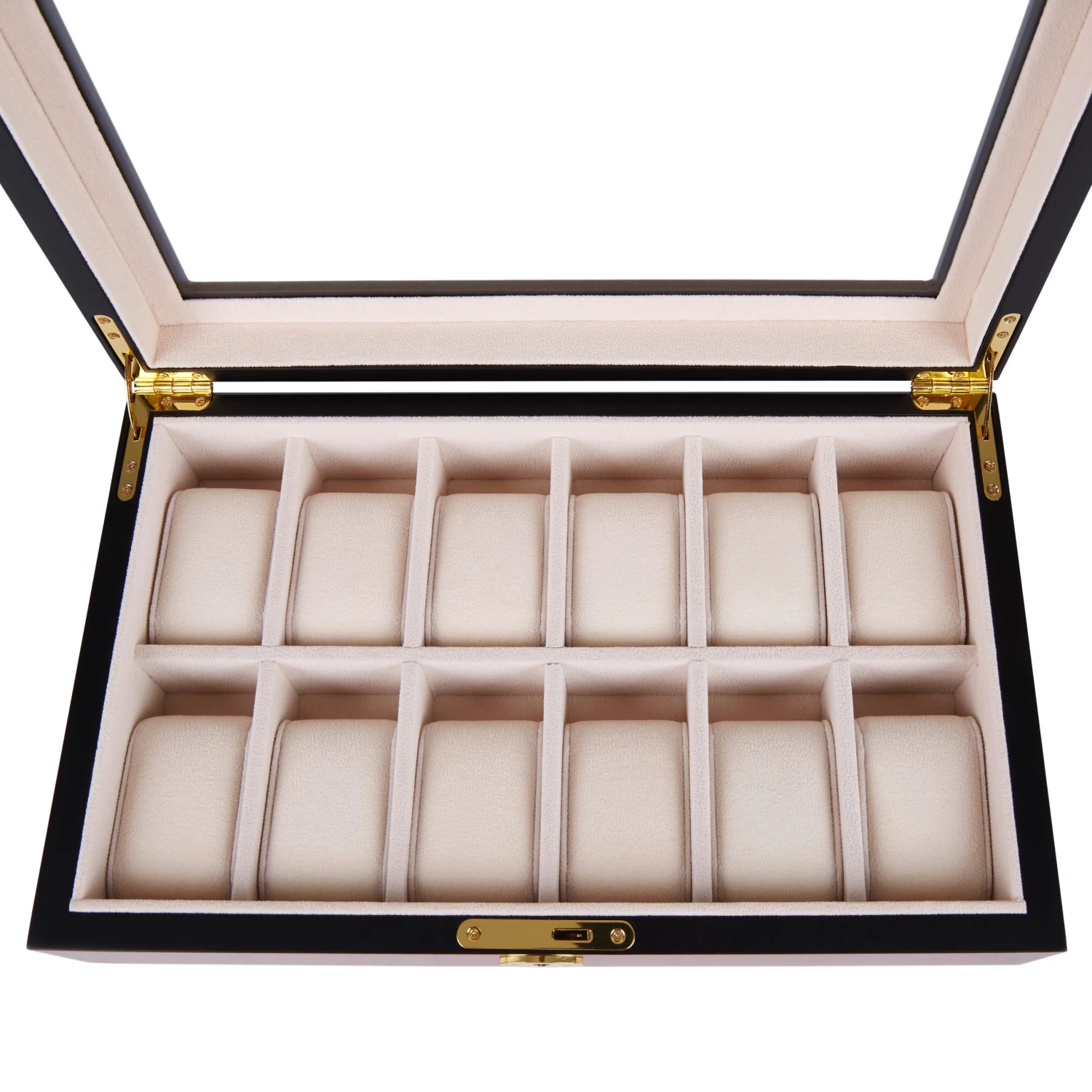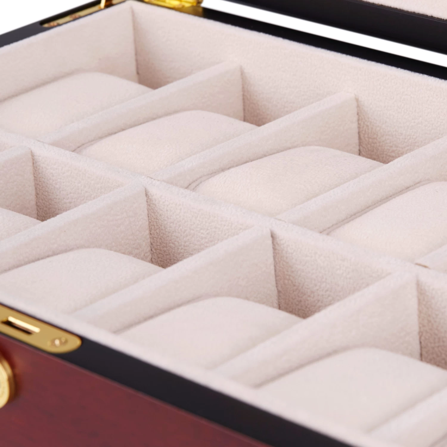 Features a soft, plush velvet interior and individual pillows to keep your pieces protected and scratch free. Shuts securely with the polished gold-toned lock.