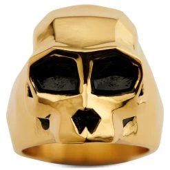Cast in polished gold-tone stainless steel, this large men’s ring has a weight and size that are designed for the strong. Features a faceted band.