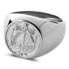 This sleek, silver-tone signet ring resembles the famous coin of Olaf Guthfrithsson, the ruler of Dublin and Viking Northumbria in the 10th century.