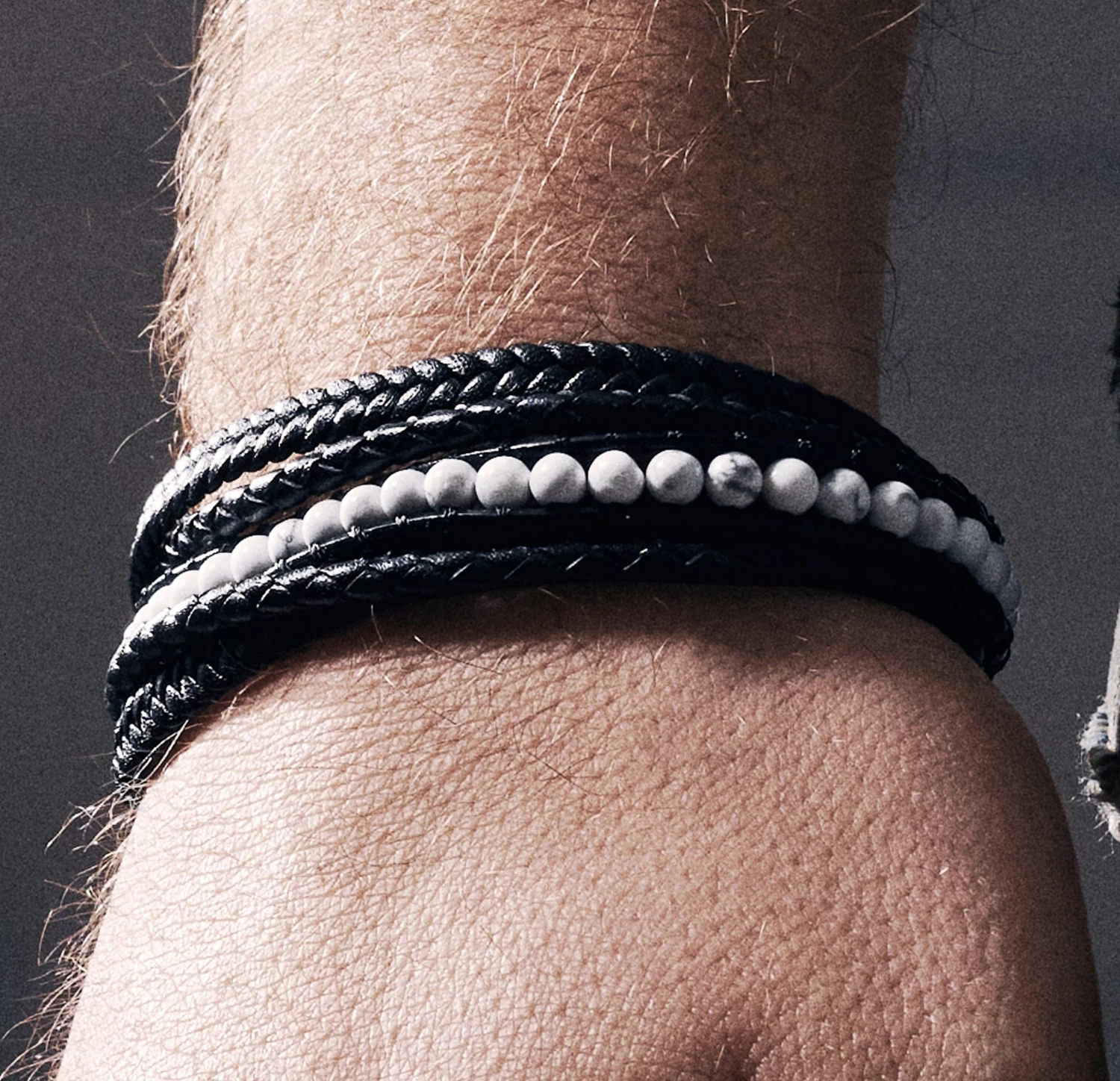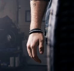 The genuine leather braids are lightweight and comfortable, and the string of beads at the center is woven between two leather bands. This men’s bracelet is secured with a solid, surgical-grade stainless steel magnetic lock featuring the Lucleon logo.