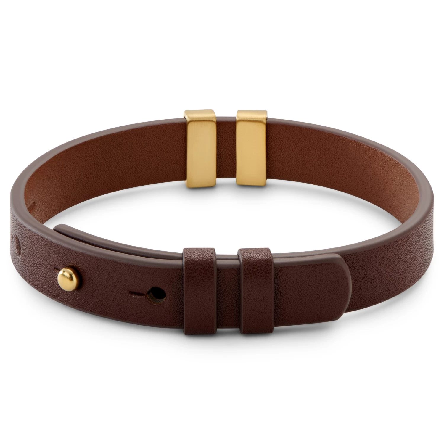 This men’s ID bracelet comes in a handsome earthy brown with gold-tone elements. Designed for durability and comfort, with a full-grain leather construction that’ll only feel more supple over time.