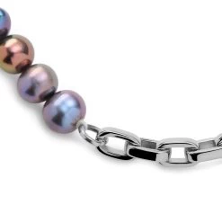 Immerse yourself in the timeless allure of the ocean’s treasures with this men’s pearl bracelet. Because the pearls are natural, each bracelet boasts unique iridescent hues. No two bracelets are alike.