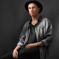 Immerse yourself in the serene beauty of natural larimar with this men’s necklace. Its soothing blue hues and captivating marbled patterns evoke the tranquil essence of tropical waters.