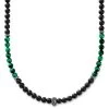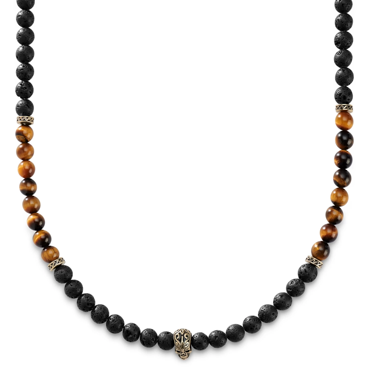 Nature’s bounties meet the image of death on this men’s necklace. Natural stone beads frame the fierce skull – a reminder to live life to its fullest.