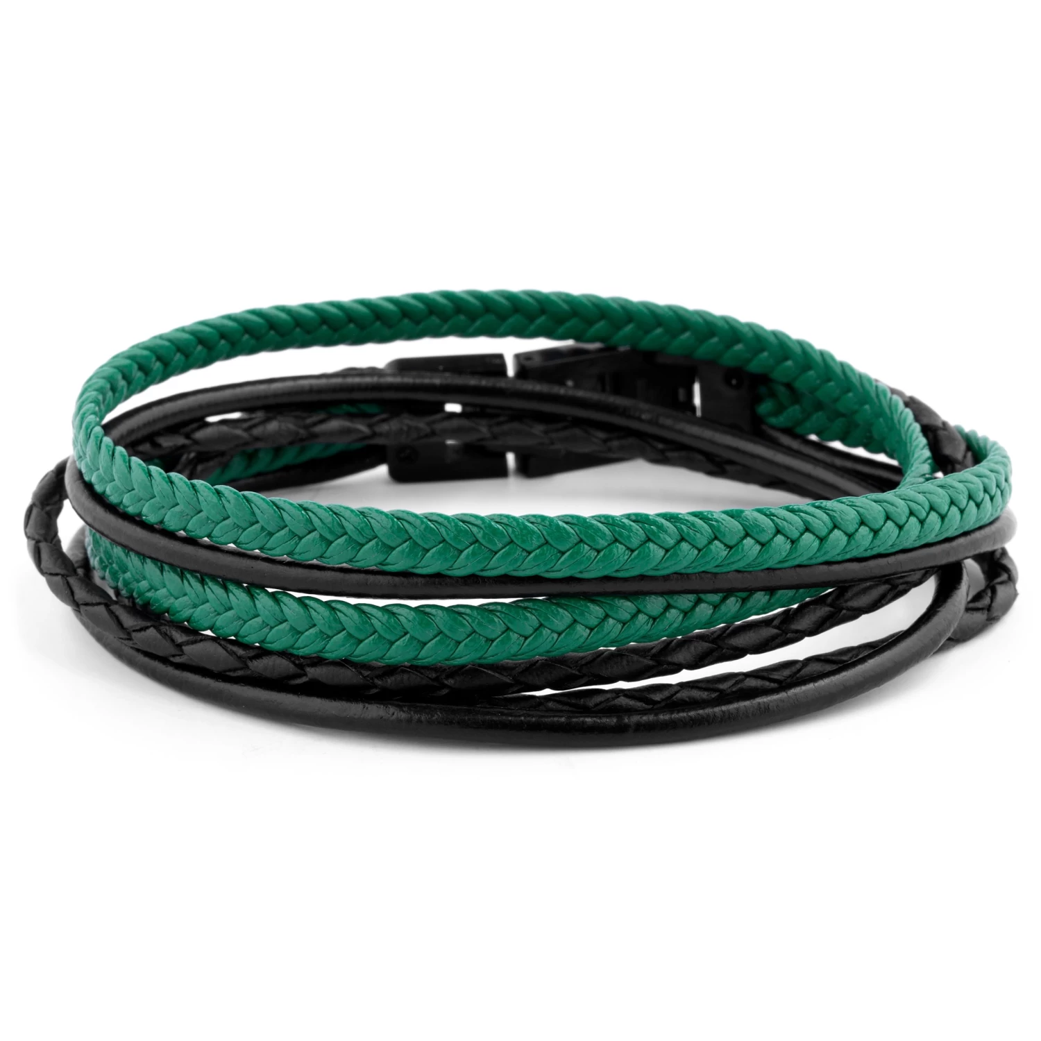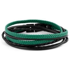 Crafted from top grade leather, this gorgeous black and green double wrap bracelet will enhance any outfit.