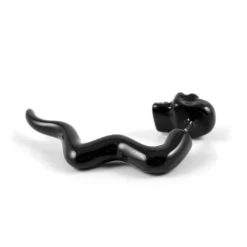 A black skull faux taper earring for men with a snake-like body slithering through your piercing.