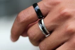A sleek and durable men’s ring crafted from PVD-coated surgical steel – the edgy black colour won’t fade or flake over time. Comes in a classic court profile, providing maximum comfort for all-day wear.