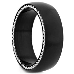 This unique black ring for men features a silver-toned chain embedded in its edge. Crafted with surgical-grade stainless steel.