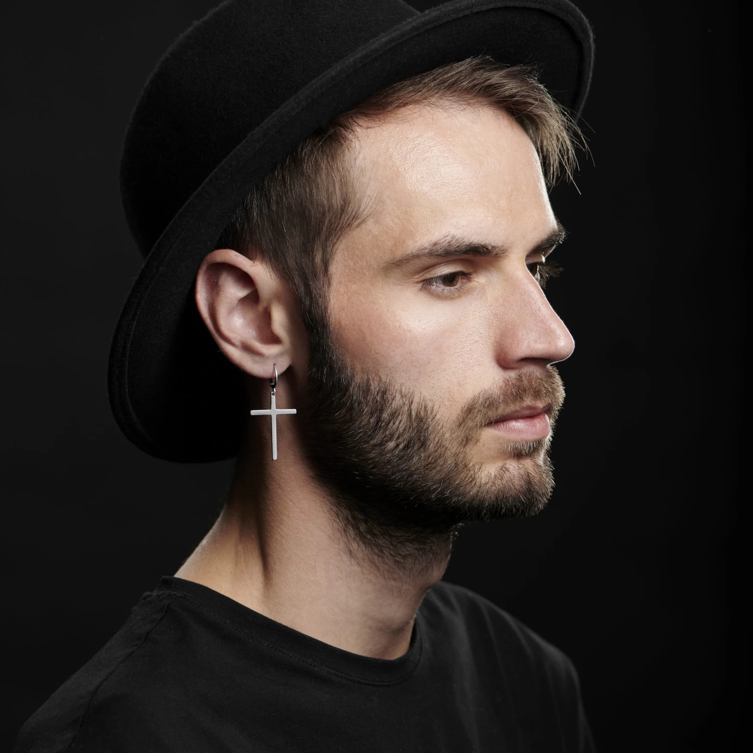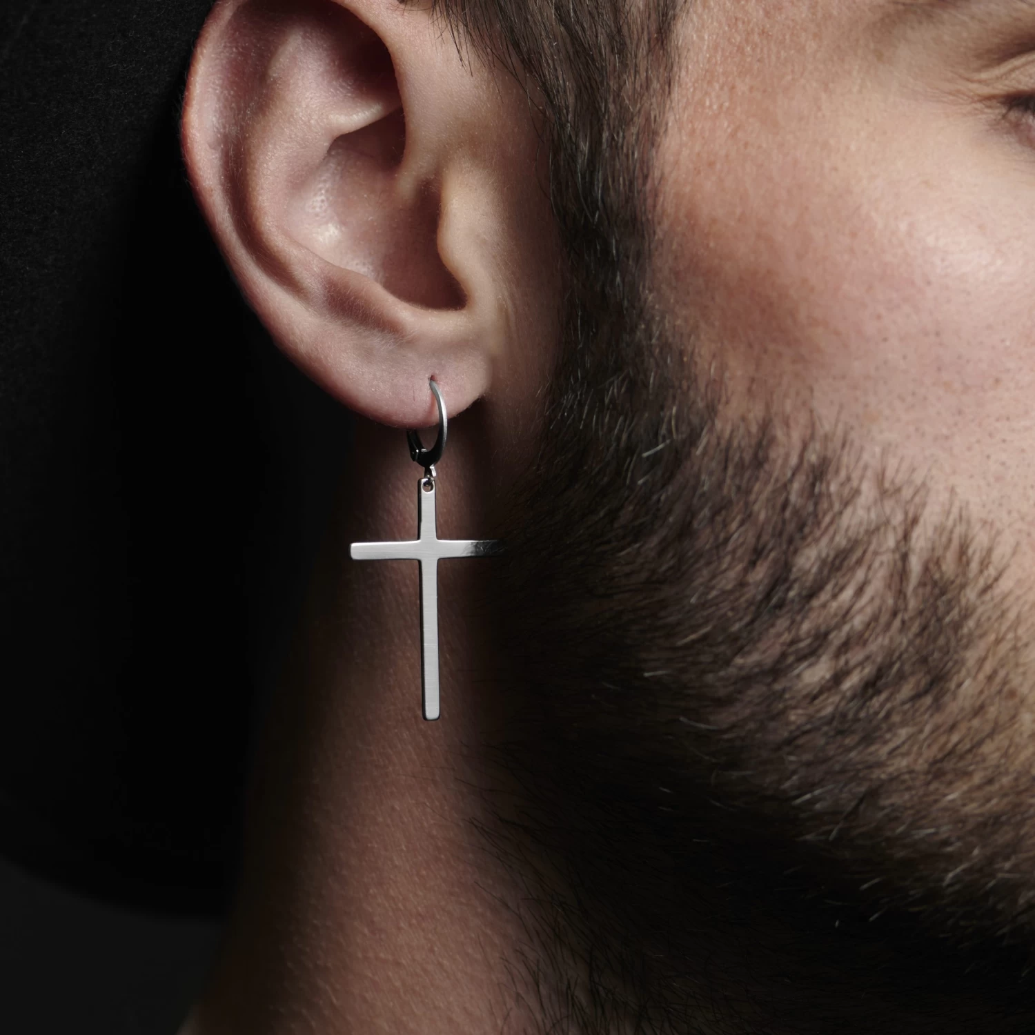 A sleek men’s earring with a dangling cross – express your faith in style. Crafted from durable surgical steel polished to a shine.