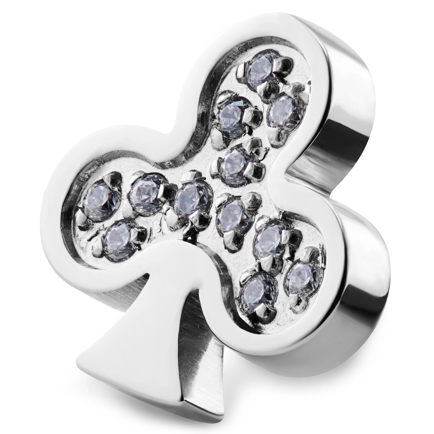 Made of surgical-grade stainless steel polished to a shine. The stones on its face are clear cubic zirconia.