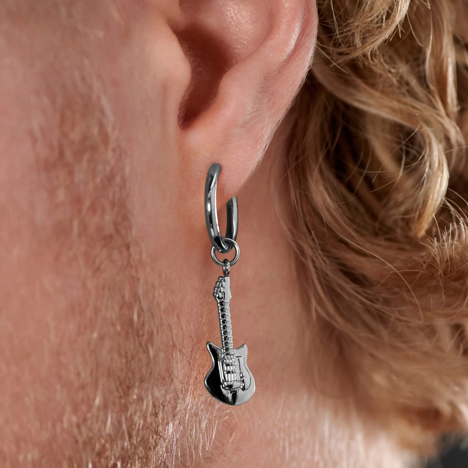 Turn your style up to 11 with this ready-to-rock guitar charm and hoop earring.