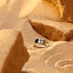 Engraved with the Spanish Lord’s Prayer on one side and a bold cross on the other. Twist the ring around to get a different look each day.