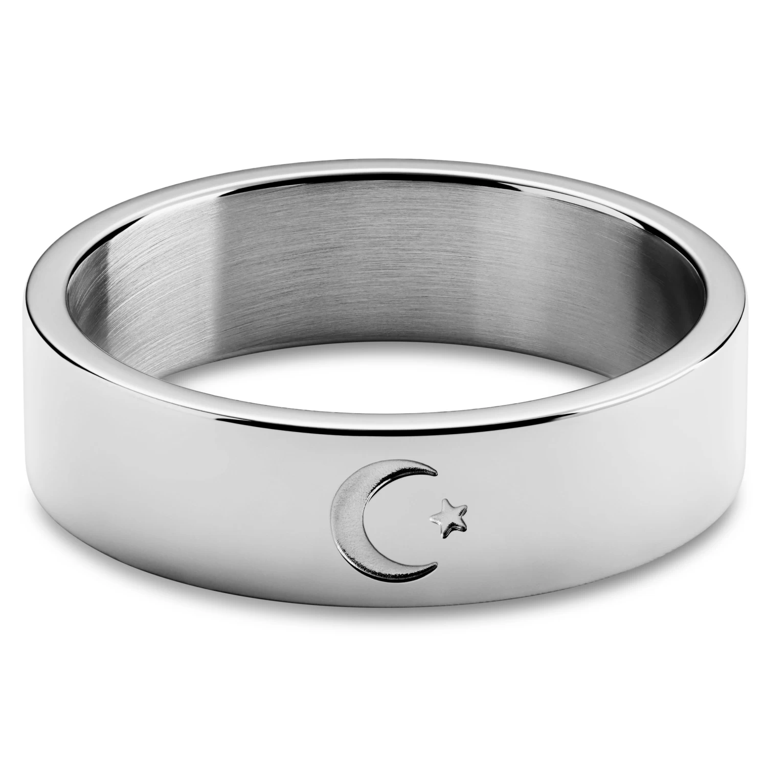 Born out of Ottoman reign, the star and crescent is one of the major symbols of the Islamic faith. Let your style express your faith with this silver-tone men’s ring.