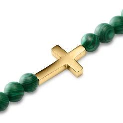 At the center of this men’s bracelet is a cross, framed by malachite beads. The cross is the emblem of the Christian faith and a symbol of hope and new beginnings.