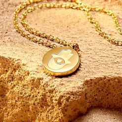 In many cultures and faiths, the Hamsa hand is used as a protection amulet. Worn with fingers pointing upwards, it’s believed to ward off the curse of the evil eye. If it points downwards, it invites blessings and prosperity.
