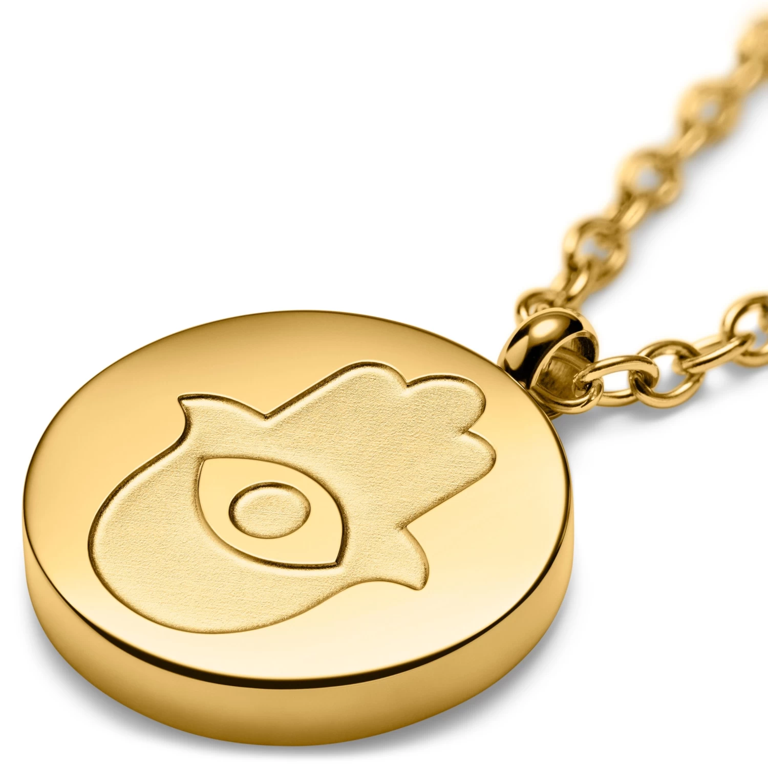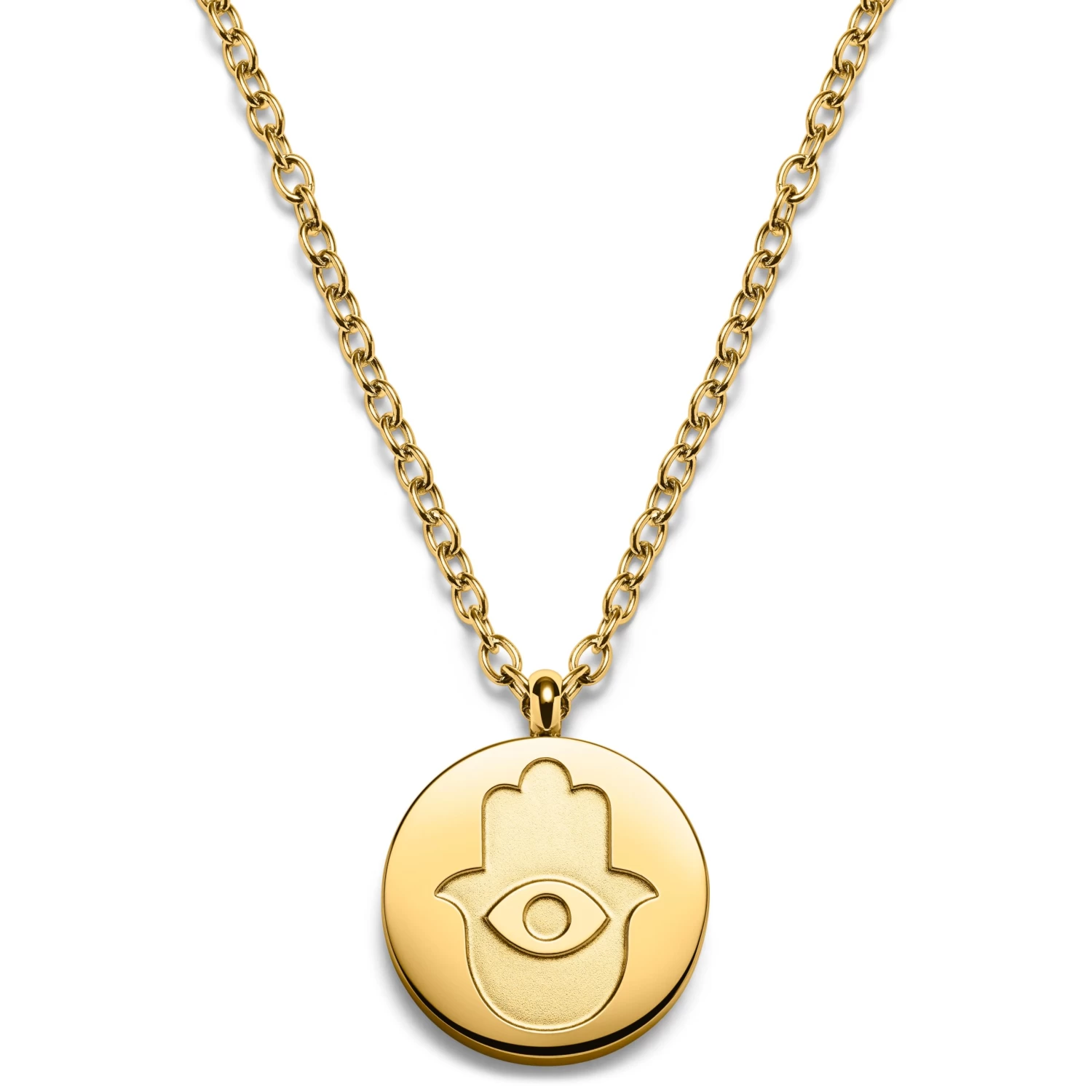 This men’s necklace features this ancient symbol on its circle pendant. The brushed finish of the symbol allows it to stand out against the polished finish of the necklace.