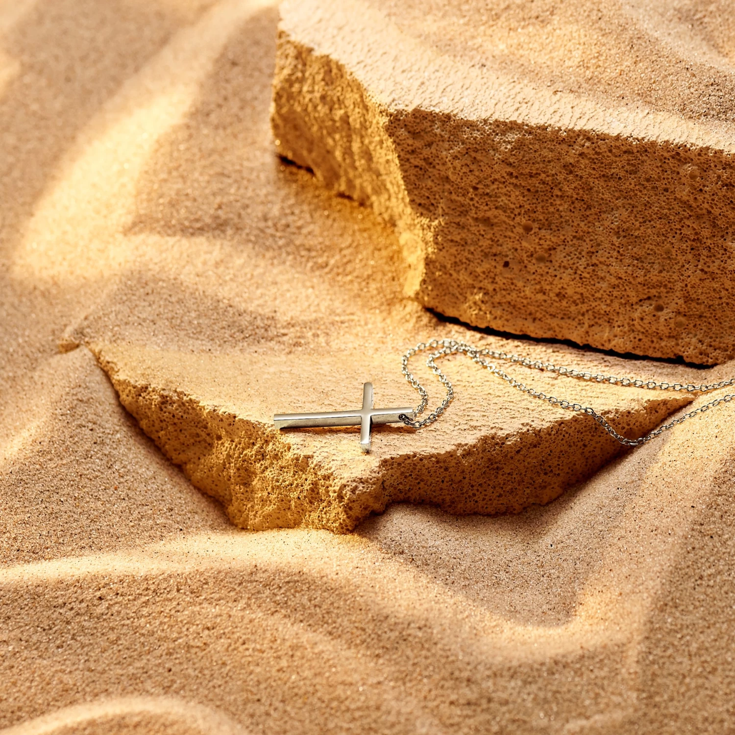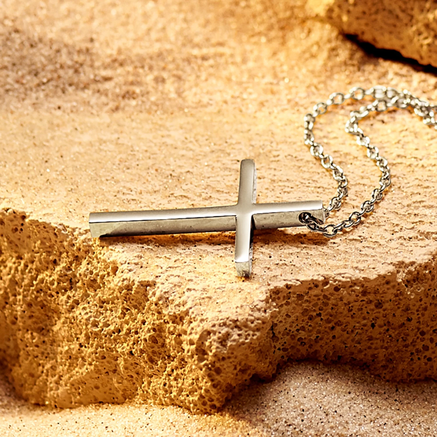 A cross pendant dangles from this men’s necklace. Symbolic of the Christian faith, the cross has become a symbol of hope and salvation. Express your faith in timeless style.