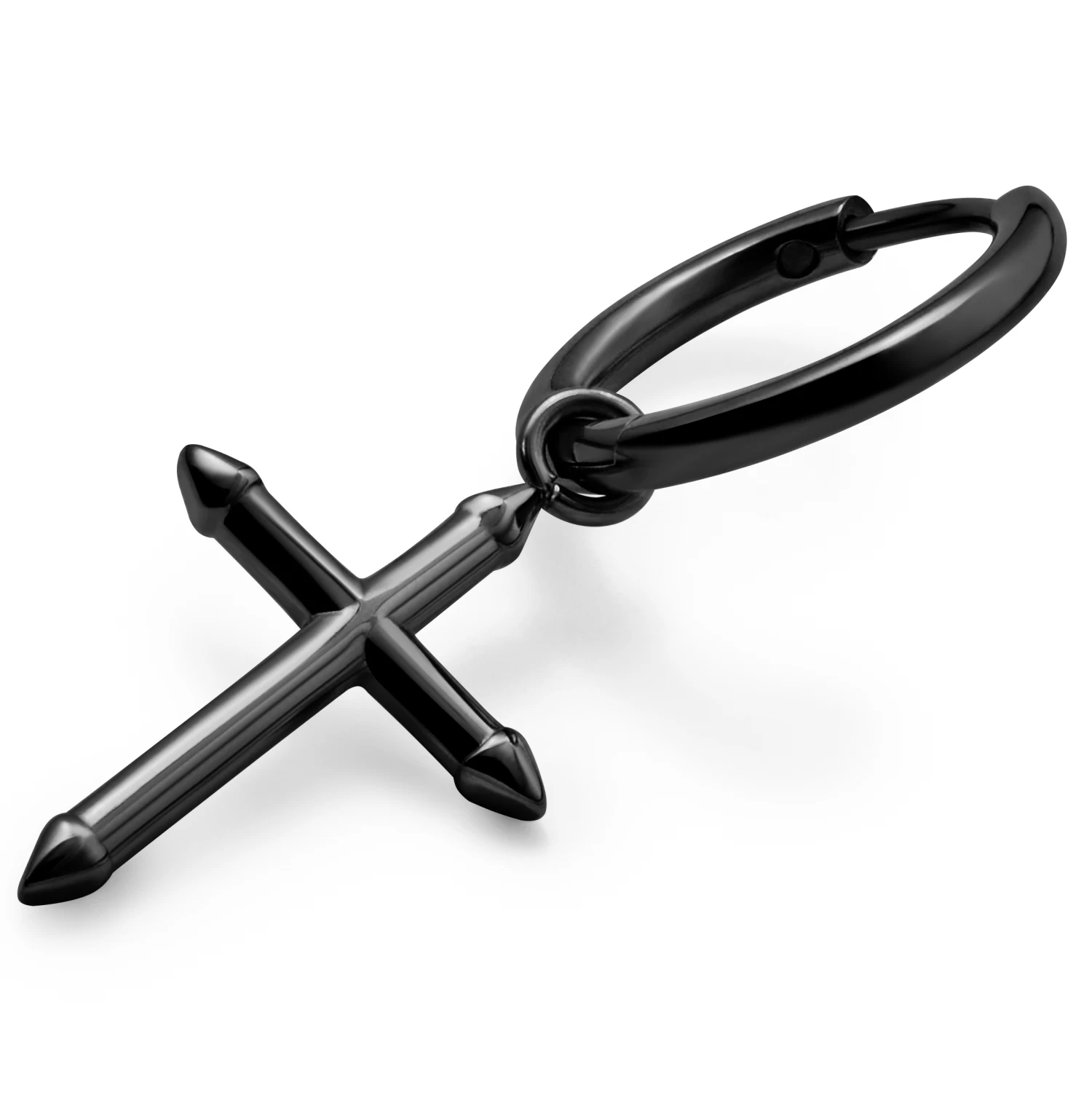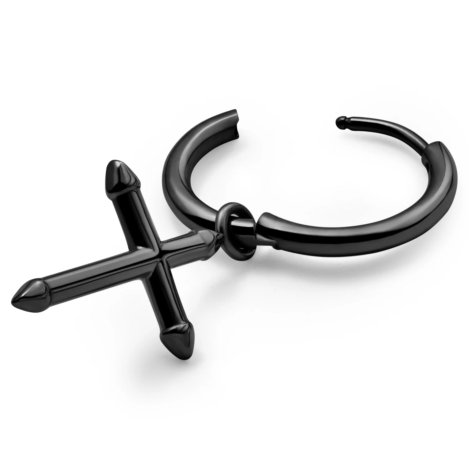 Made of surgical-grade stainless steel and coated black with ultra-durable and environmentally friendly PVD coating, this lightweight men’s earring will outlast most things in your arsenal of style.