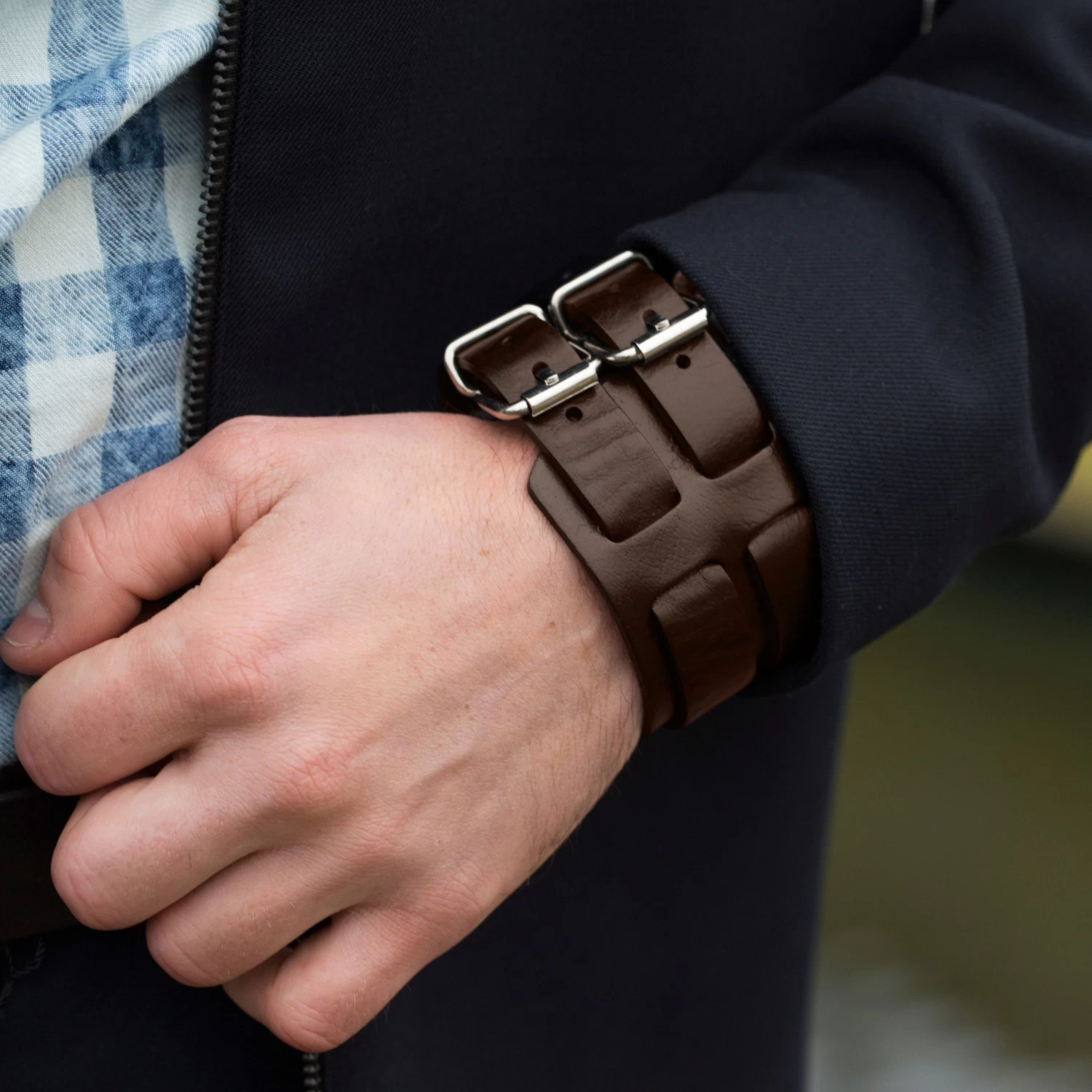 One of our most popular raw leather bracelets, this chunky model adds a weighty impact to your overall look.